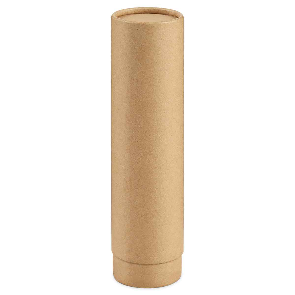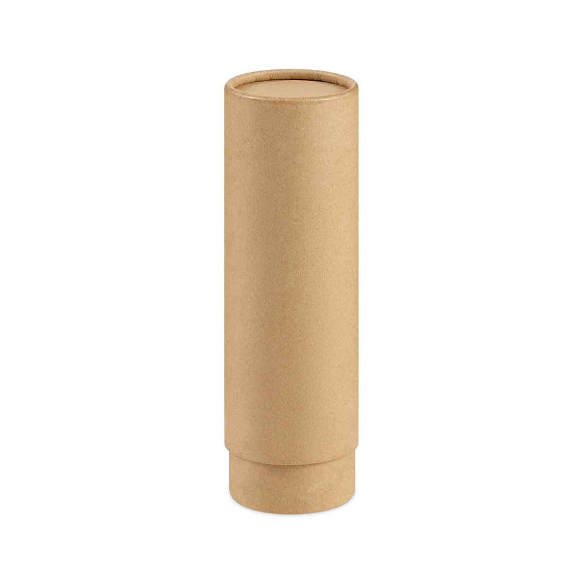 Il tubo kraft marrone comunica chiaramente il messaggio di sostenibilità del marchio.