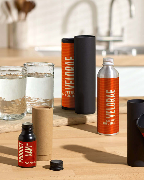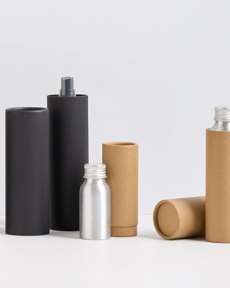 I tubi telescopici di cartone sono progettati per adattarsi perfettamente a ciascuna delle nostre bottiglie di alluminio. Ogni tubo si adatta perfettamente a qualsiasi bottiglia contenente oli, disinfettanti, cosmetici, creme e altri prodotti a base acquosa.
